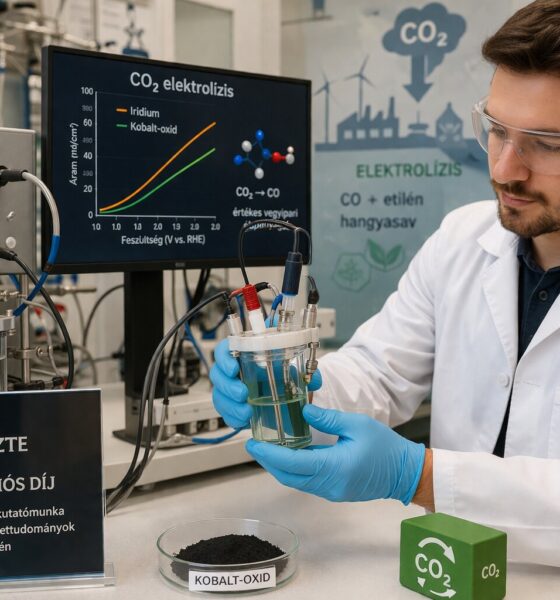 Elkerülni, hogy az ipari létesítményekből a légkörbe kerüljön a szén-dioxid és közben a vegyipar számára hasznos alapanyagokat előállítani – írja az alternativenergia.hu. Ezt, a bolygónk jövője szempontjából kiemelten fontos és üzletileg is ígéretes célt tűzték ki maguk elé a Szegedi Tudományegyetem (SZTE) kutatói. A projektben – amely elnyerte az SZTE innovációs díját is – a rendkívül drága és kis mennyiségben rendelkezésre álló irídium helyett sikerrel alkalmaztak kobalt-oxidot anód katalizátorként a CO2 elektrolízise során, most pedig már azon dolgoznak, hogy átmeneti fémekkel még hatékonyabbá tegyék az eljárást. Hatalmas kihívást jelent az emberiség számára a klímaváltozás, amelynek egyik kiváltó oka a légkörben jelenlévő szén-dioxid (CO2) koncentrációjának folyamatos növekedése, ami egyértelműen az emberi tevékenységhez (pl. fosszilis energiahordozók elégetése) köthető. A CO2 elektrokémiai átalakítása révén azonban egyszerre lehetne csökkenteni az ipari létesítmények károsanyag-kibocsátását és a vegyipar számára hasznos anyagokat előállítani.