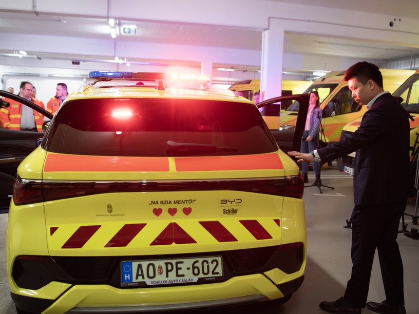 Hét új elektromos hajtásláncú, BYD Atto 3 típusú mentőautót állított szolgálatba szerdán az Országos Mentőszolgálat (OMSZ) – tájékoztat az alternativenergia.hu. Az Energiaügyi Minisztérium, a BYD és a Schiller Csoport támogatásával beszerzett járművek közül 5 autó a fővárosi mentőellátást erősíti, két autó pedig vidéken lát majd el feladatot – tartalmazza a közlemény. A fejlesztés célja a gyorsreagálású egységek hatékonyságának növelése, valamint a környezetbarát működés erősítése – tették hozzá. Azt írták: az elektromos mentőjárművek szolgálatba állítása nemcsak technológiai fejlesztést jelent, hanem egy új korszak kezdetét is. A 204 lóerős teljesítmény, a 7,3 másodperces 0-100-as gyorsulás és a 60 kilowattóra kapacitású akkumulátor a mindennapi használatban válnak valódi előnnyé. Továbbá az alacsony elektromos fogyasztás, a 400 kilométeres hatótáv, a lassításkor visszanyert energia stabil, kiszámítható működést jelent. Az egyszerűbb műszaki felépítés, a kevesebb kopó alkatrész, az alacsonyabb szervizigény pedig nagyobb üzembiztonságot eredményez, a jármű így azonnal, minden helyzetben használatra kész – fűzték hozzá.
